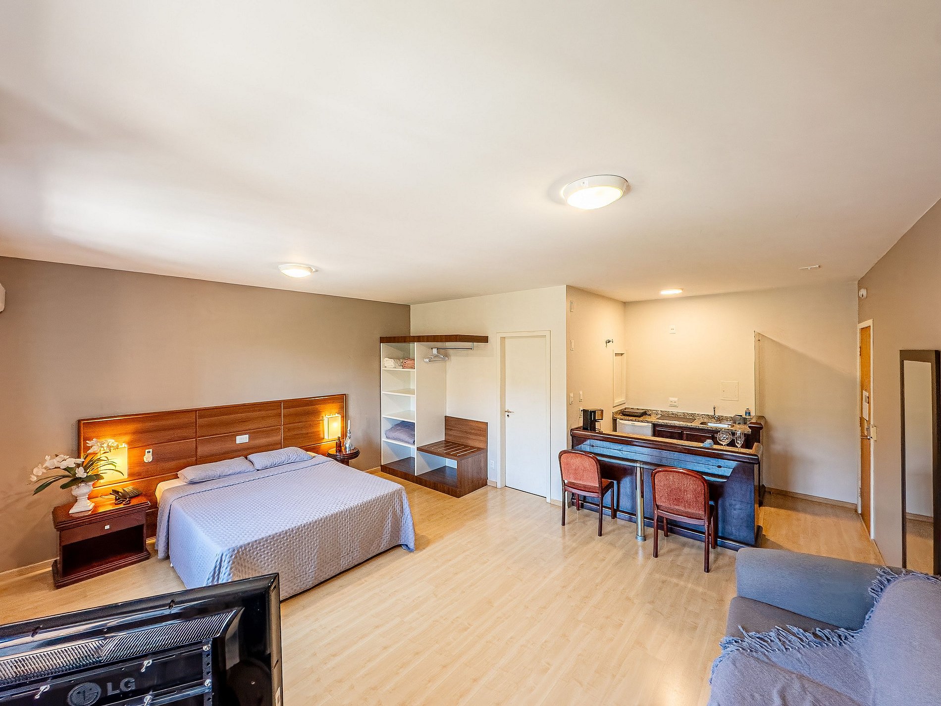 O espaço oferece quarto aconchegante, sala com TV, cozinha equipada e Wi-Fi rápido. A localização é imbatível: você estará perto de restaurantes, mercados, lojas e dos principais pontos da cidade — perfeito para trabalho ou lazer.
