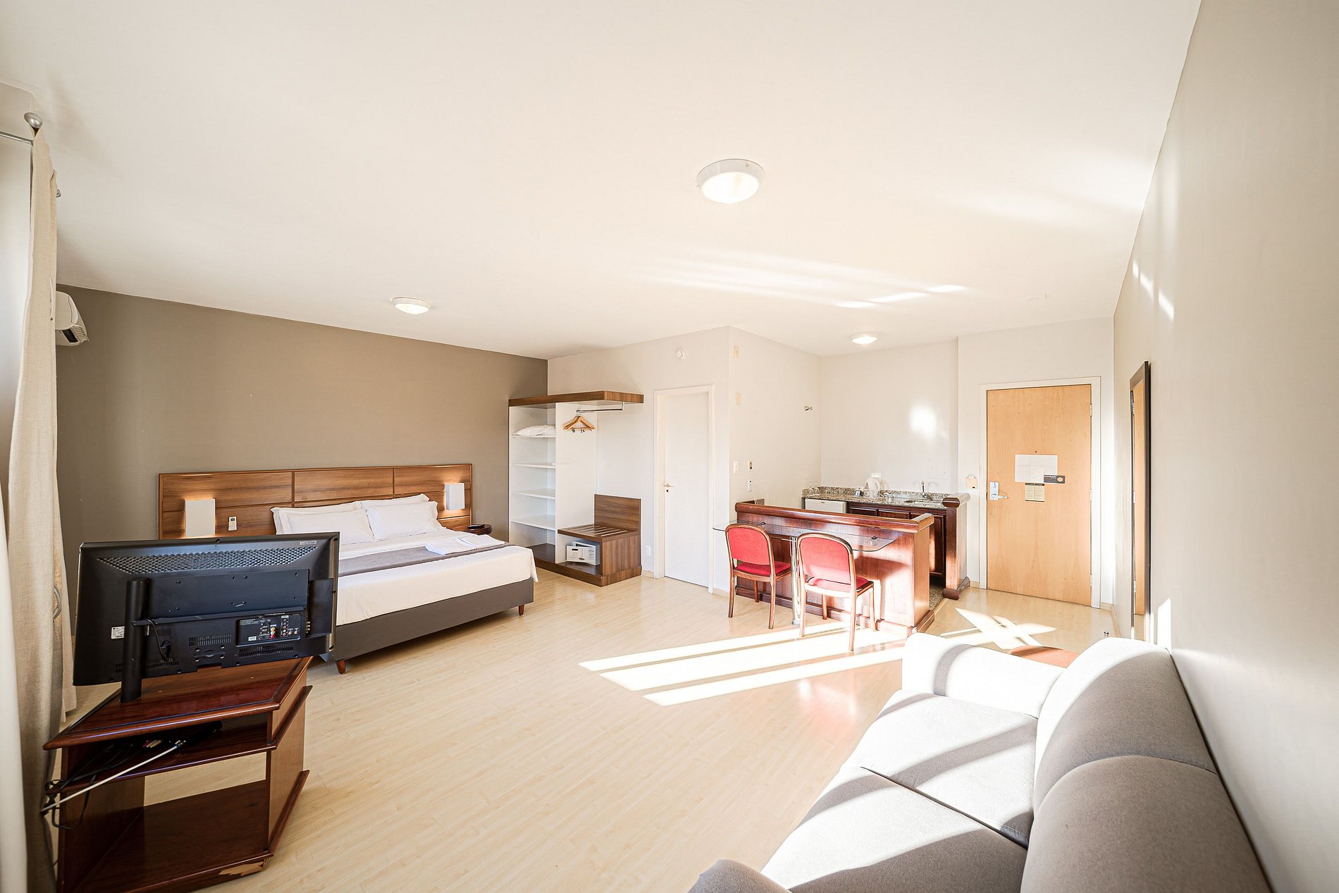 O espaço oferece quarto aconchegante, sala com TV, cozinha equipada e Wi-Fi rápido. A localização é imbatível: você estará perto de restaurantes, mercados, lojas e dos principais pontos da cidade — perfeito para trabalho ou lazer.
