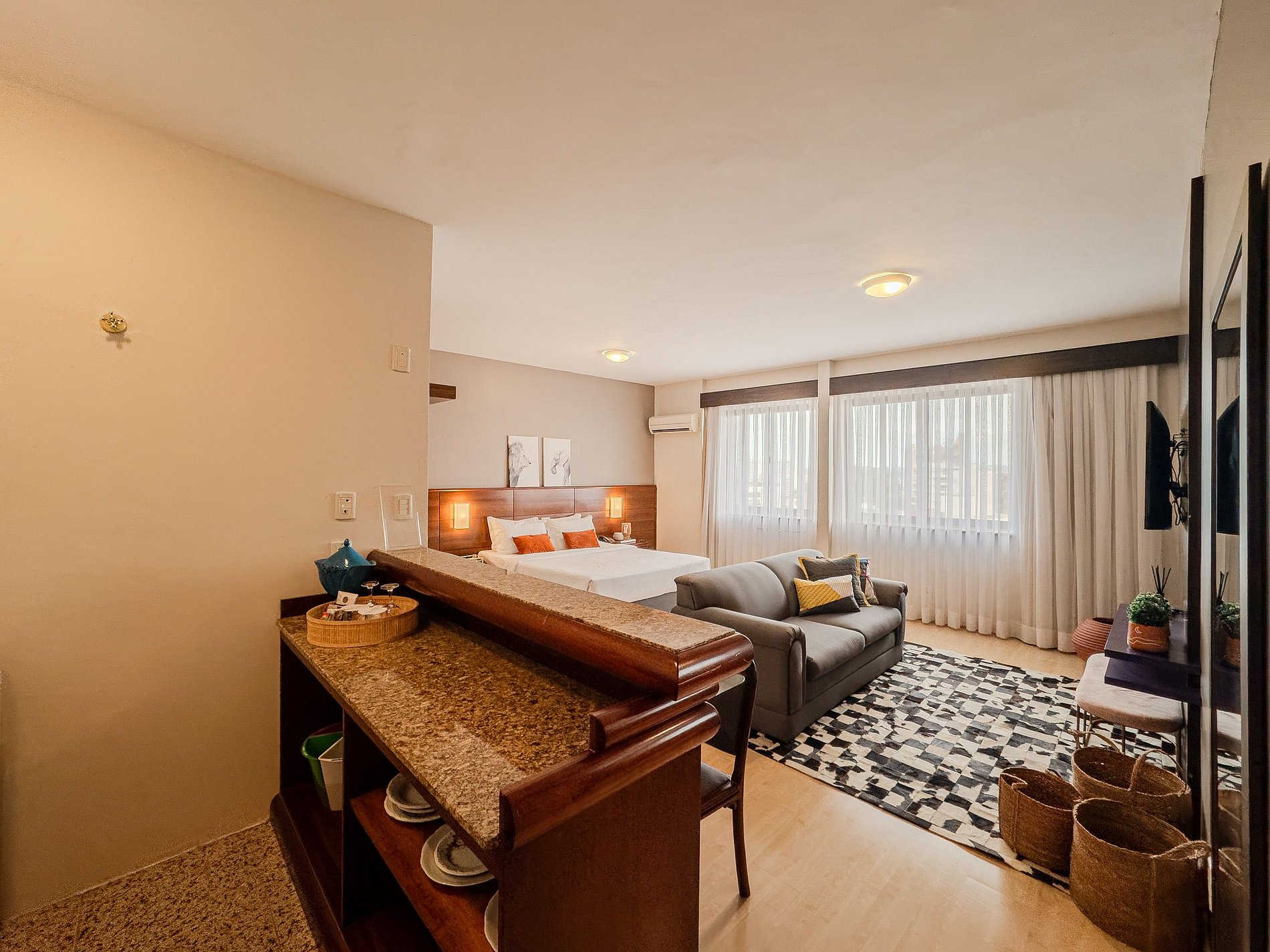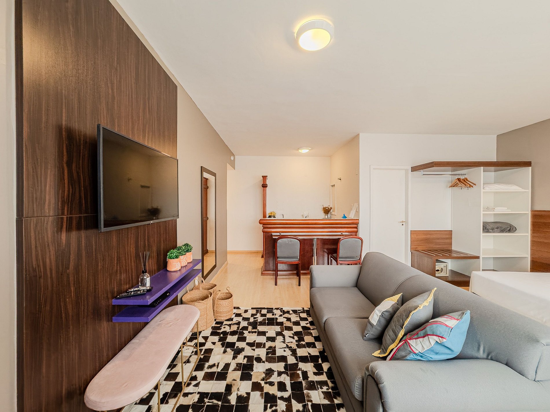 O imóvel conta com quarto confortável, sala com TV, cozinha equipada e Wi-Fi veloz. Fique próximo a restaurantes, mercados, lojas e atrações principais — ideal para trabalhar ou relaxar.