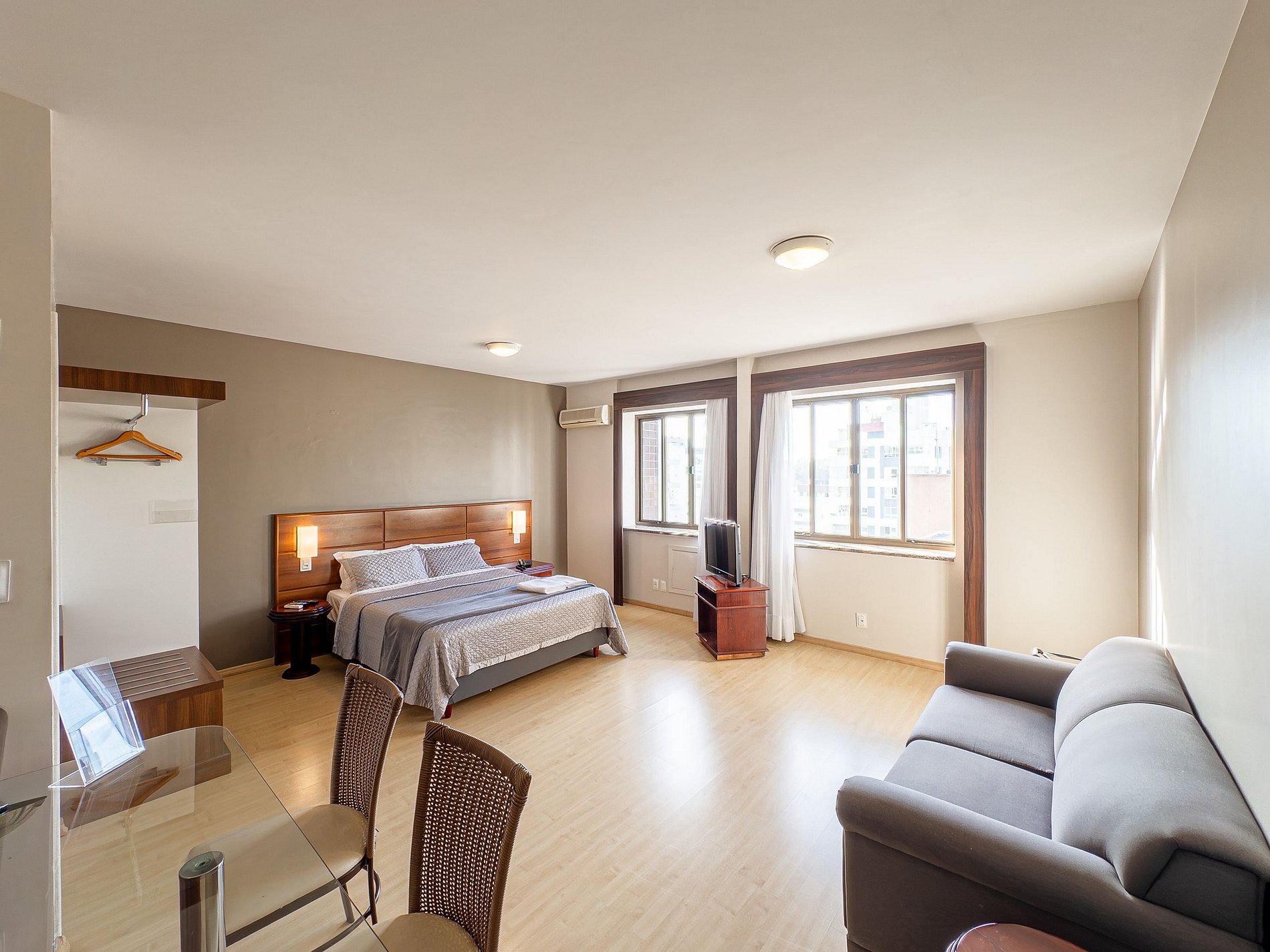 O espaço oferece quarto aconchegante, sala com TV, cozinha equipada e Wi-Fi rápido. A localização é imbatível: você estará perto de restaurantes, mercados, lojas e dos principais pontos da cidade — perfeito para trabalho ou lazer.