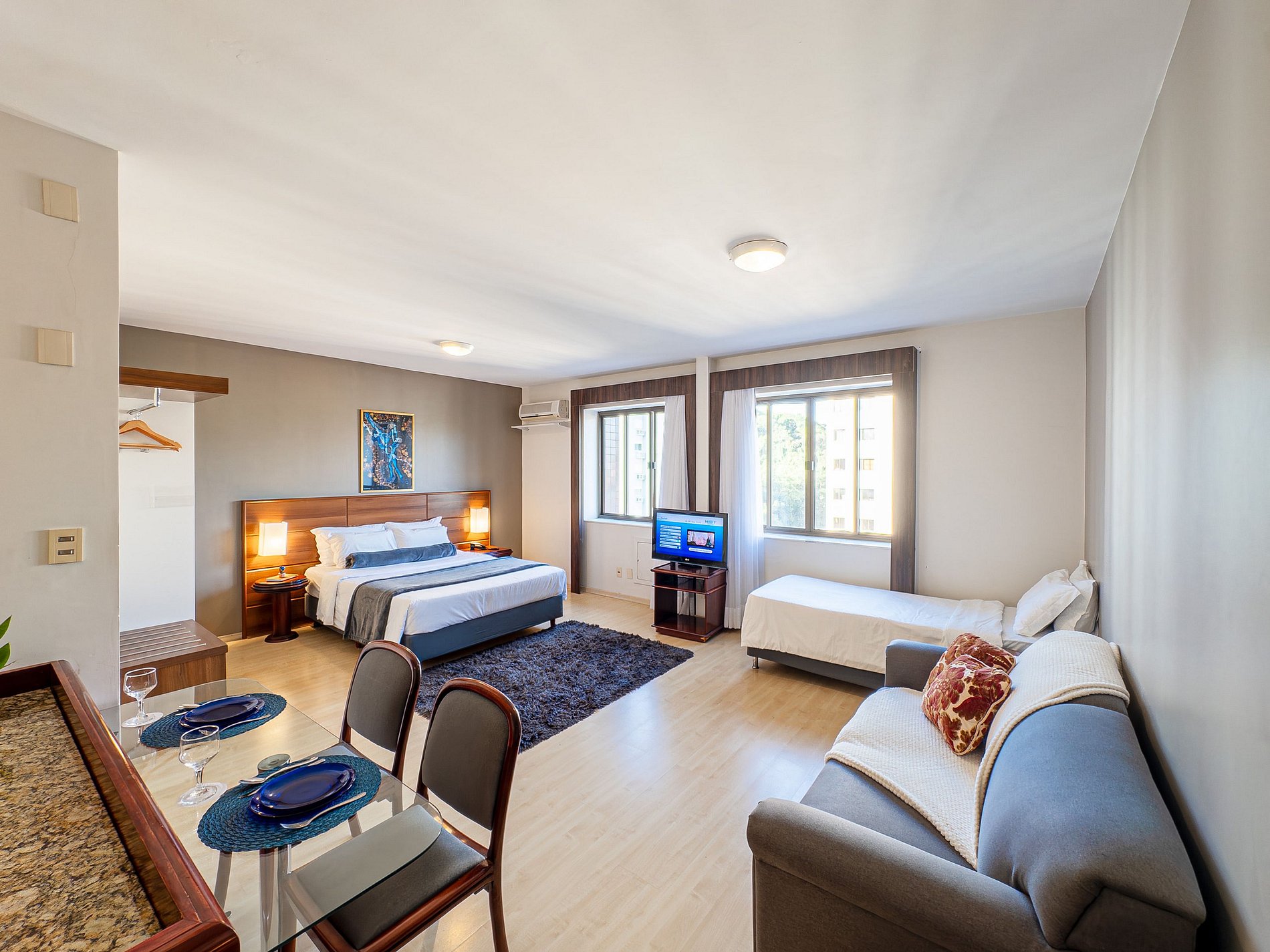 Este apartamento combina o aconchego de um lar com a praticidade de um antigo hotel Mercure, oferecendo conforto, segurança e uma localização privilegiada no coração de Joinville. Cada detalhe foi pensado para tornar a experiência fluida — do Wi-Fi rápido ao ambiente climatizado.
