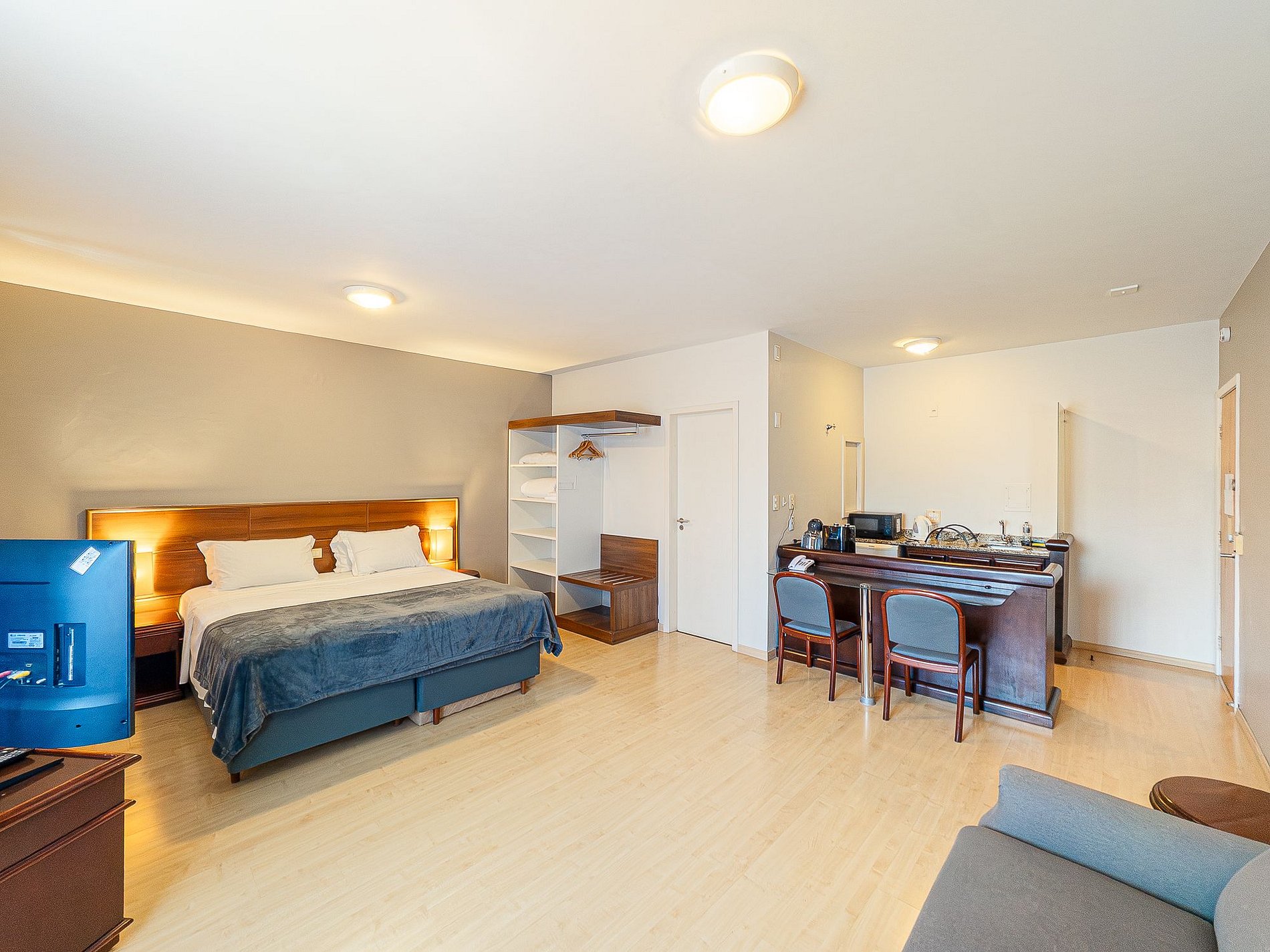 O imóvel conta com quarto confortável, sala com TV, cozinha equipada e Wi-Fi veloz. Fique próximo a restaurantes, mercados, lojas e atrações principais — ideal para trabalhar ou relaxar.
