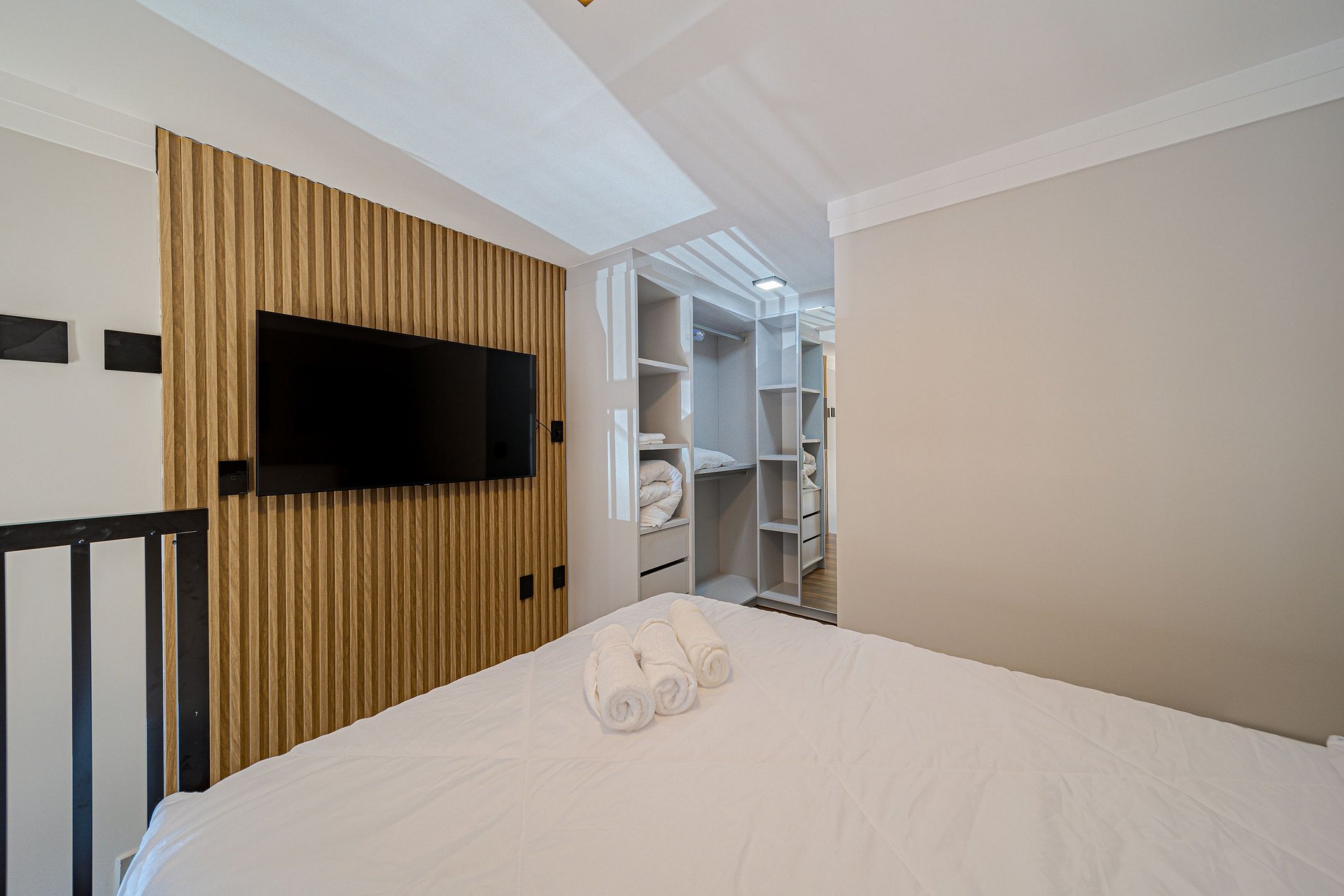 O loft é decorado com um estilo contemporâneo, combinando conforto e elegância. Cada detalhe foi cuidadosamente escolhido para criar uma atmosfera acolhedora.