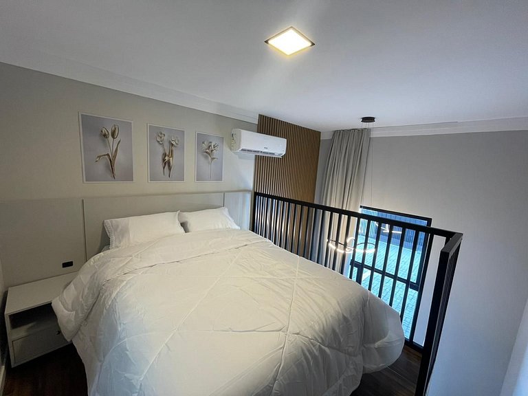 Desfrute de uma estadia confortável e prática neste moderno Loft Duplex. O espaço conta com Wi-Fi de alta velocidade, lava e seca, vaga privativa e segurança 24h, garantindo total tranquilidade durante sua hospedagem.