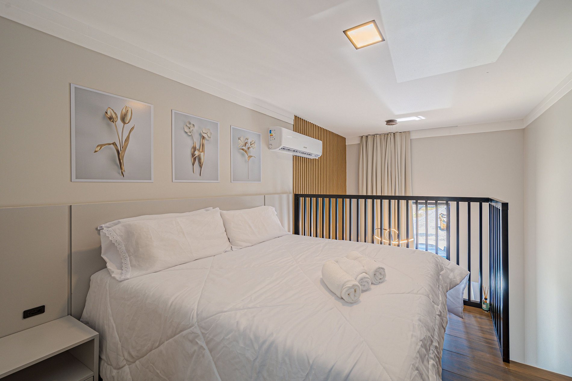 O loft é decorado com um estilo contemporâneo, combinando conforto e elegância. Cada detalhe foi cuidadosamente escolhido para criar uma atmosfera acolhedora.