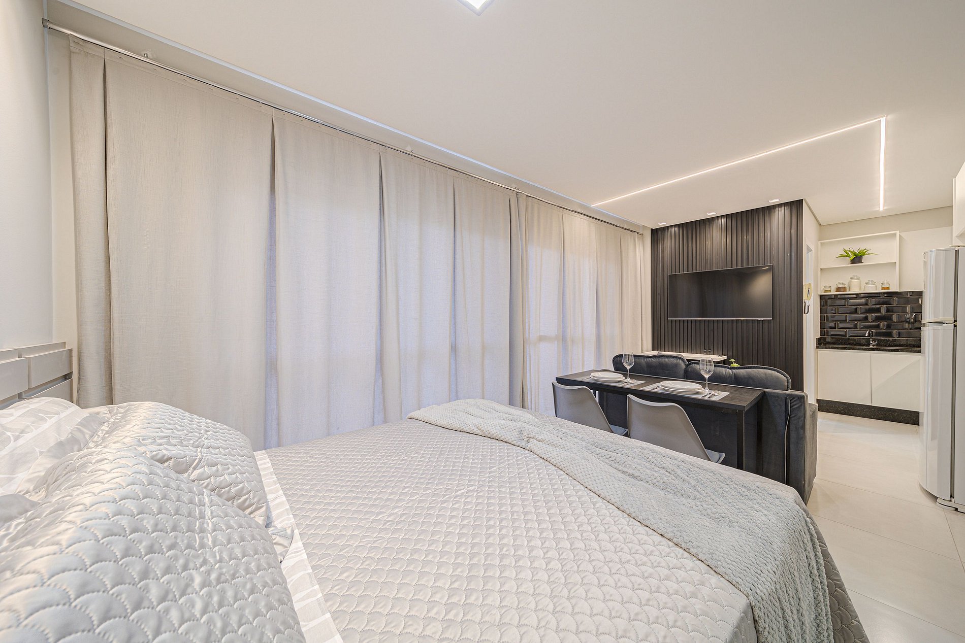 Além disso, fornecemos roupa de cama, toalhas e todos os itens essenciais para garantir uma estadia confortável e sem preocupações.