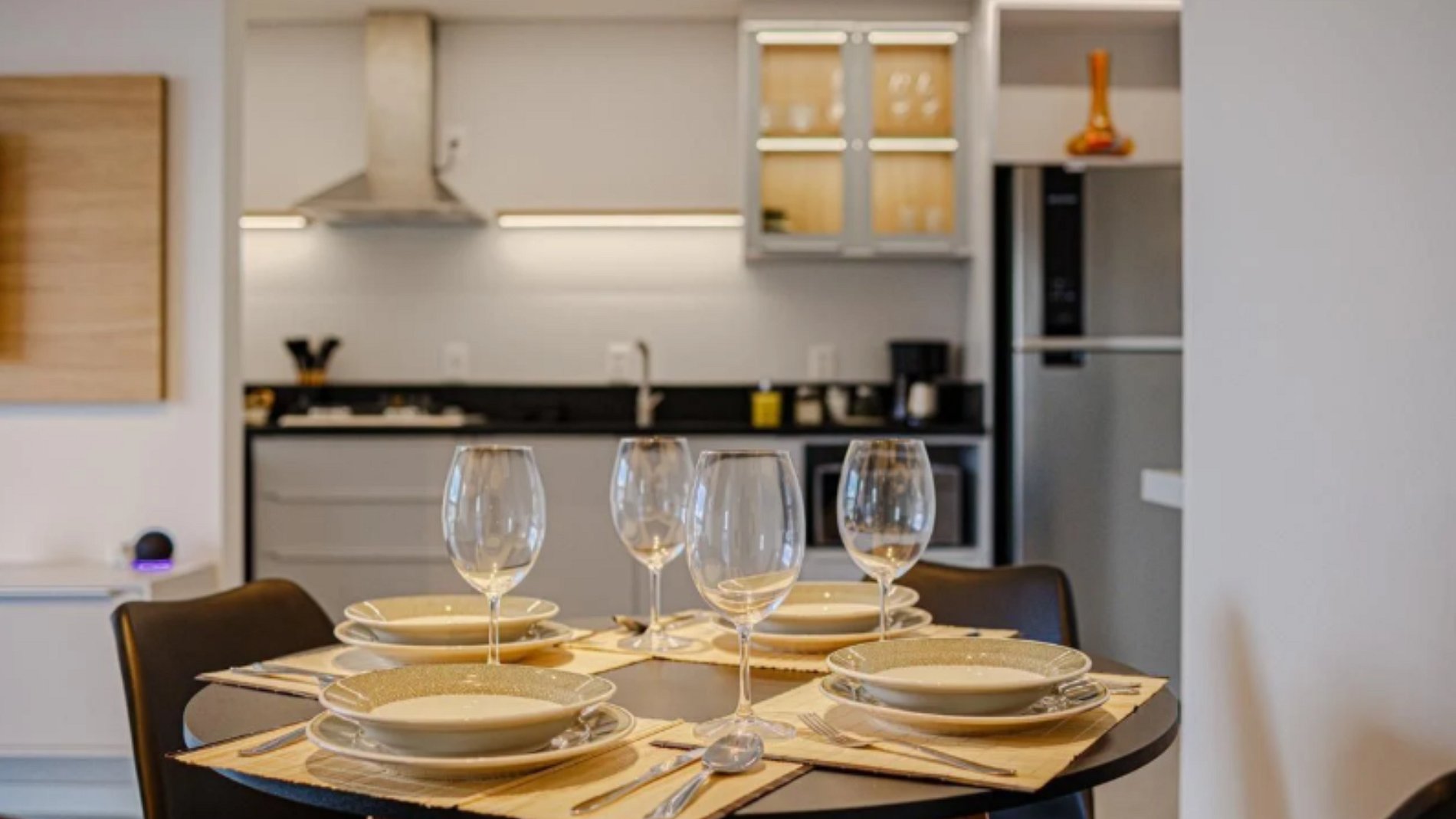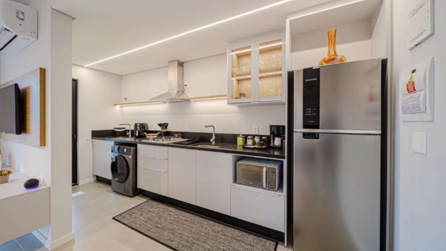 No prédio, há várias áreas de lazer, como uma excelente academia, piscina, open bar com máquina de gelo e mini mercado. Todos esses ambientes podem ser utilizados pelos hóspedes.
