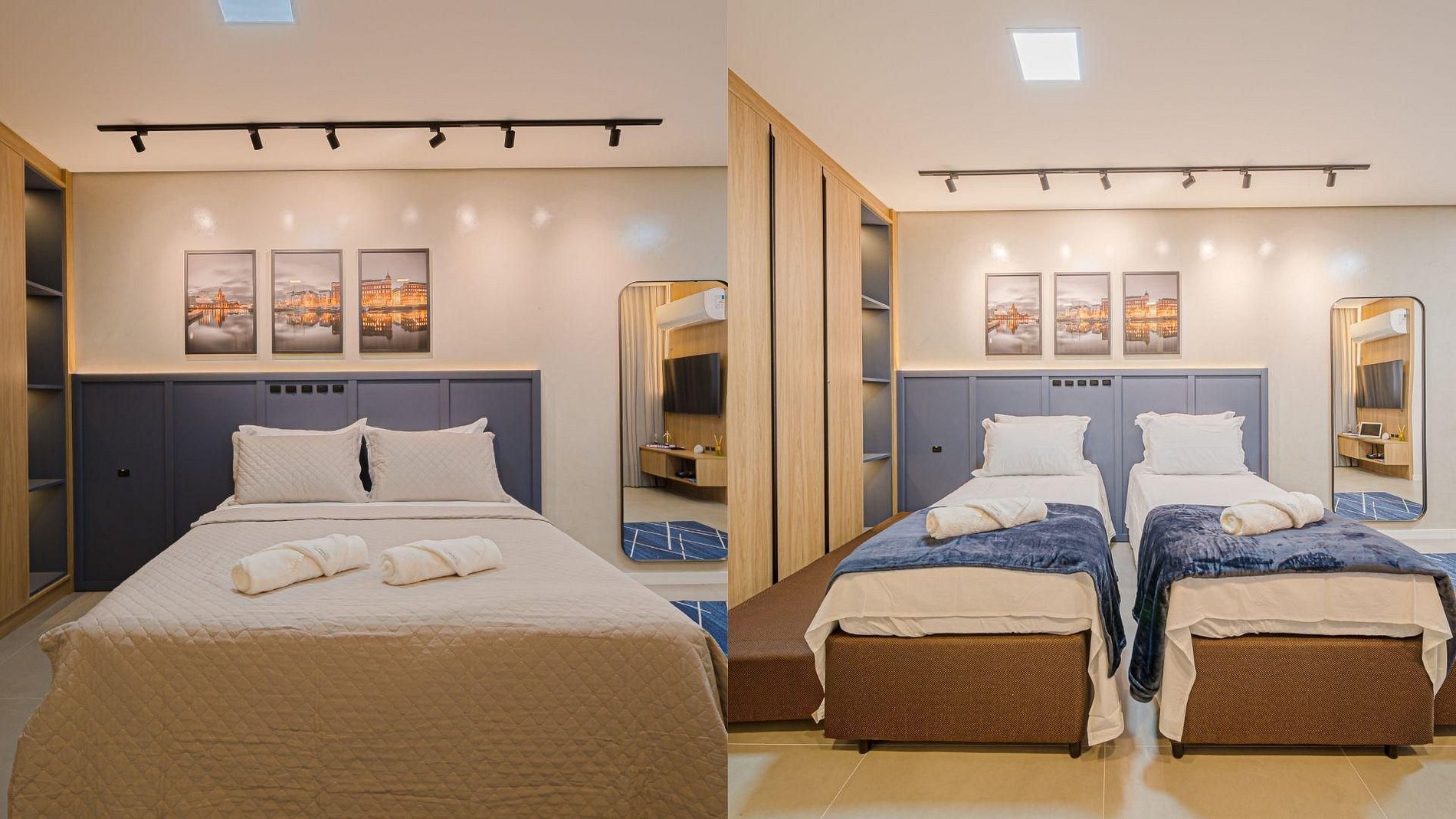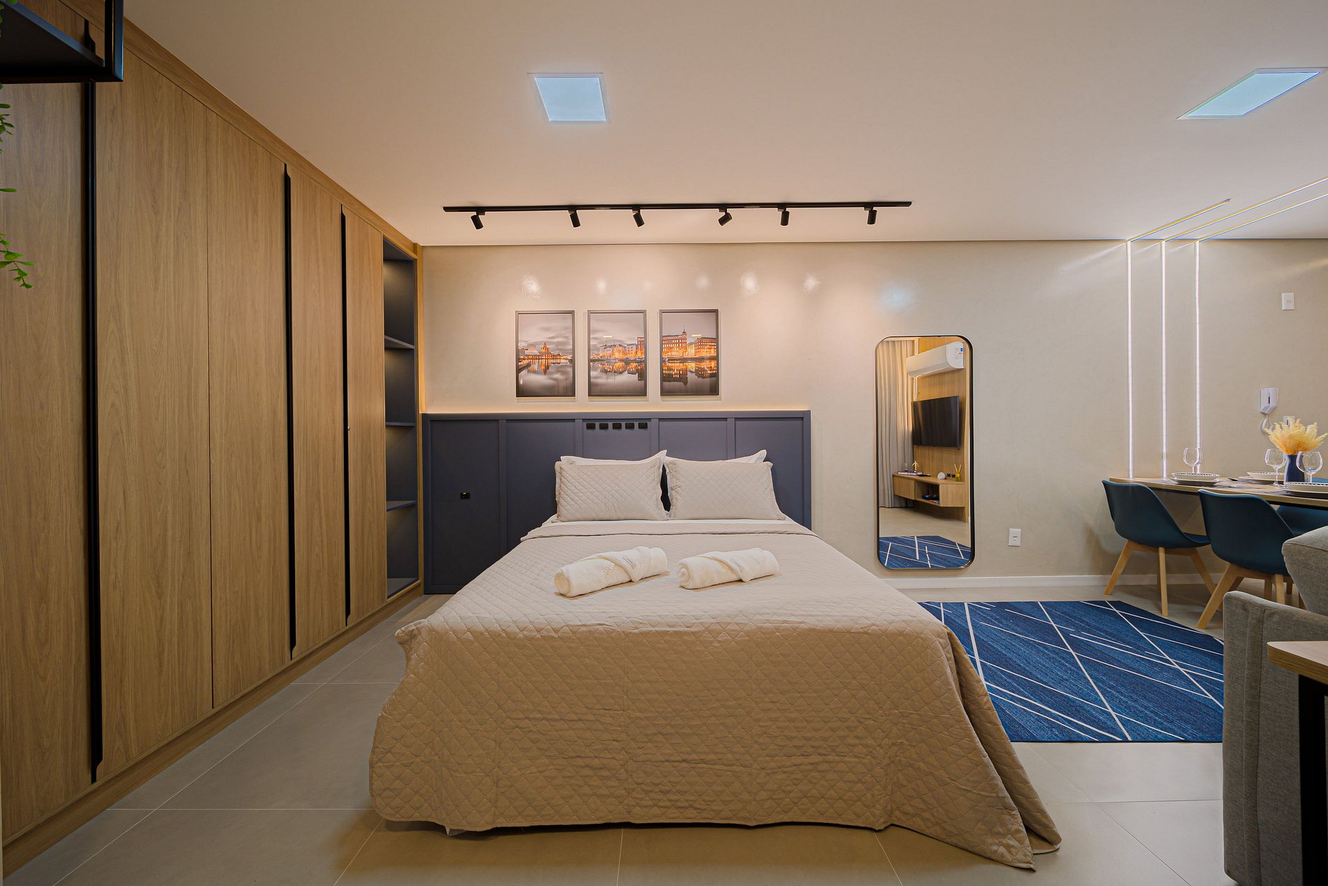 Apartamento confortável e acolhedor, preparado para receber você com praticidade e comodidade. O espaço conta com enxoval completo e tudo que é necessário para uma estadia agradável: utensílios de cozinha, itens básicos de limpeza e produtos de banho.