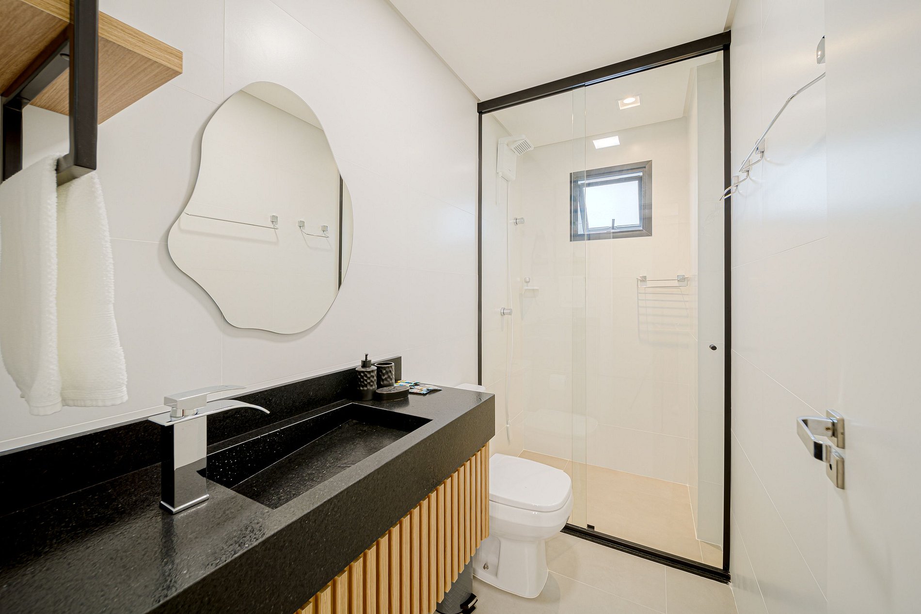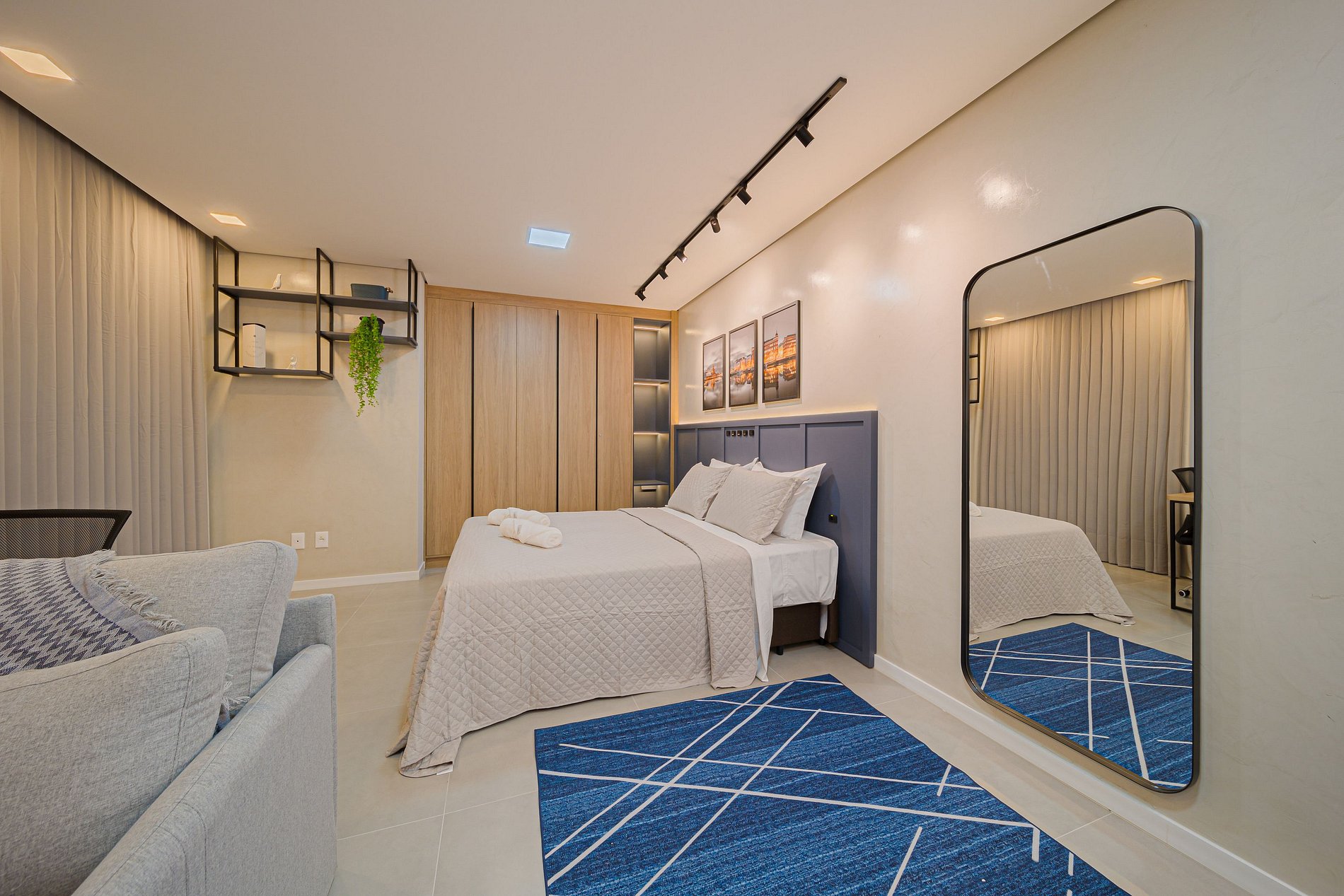 O residencial conta com uma estrutura completa para a sua estadia, incluindo minimercado, espaço para pets, quintal, piscina, academia e diversas outras comodidades disponíveis durante todo o período.