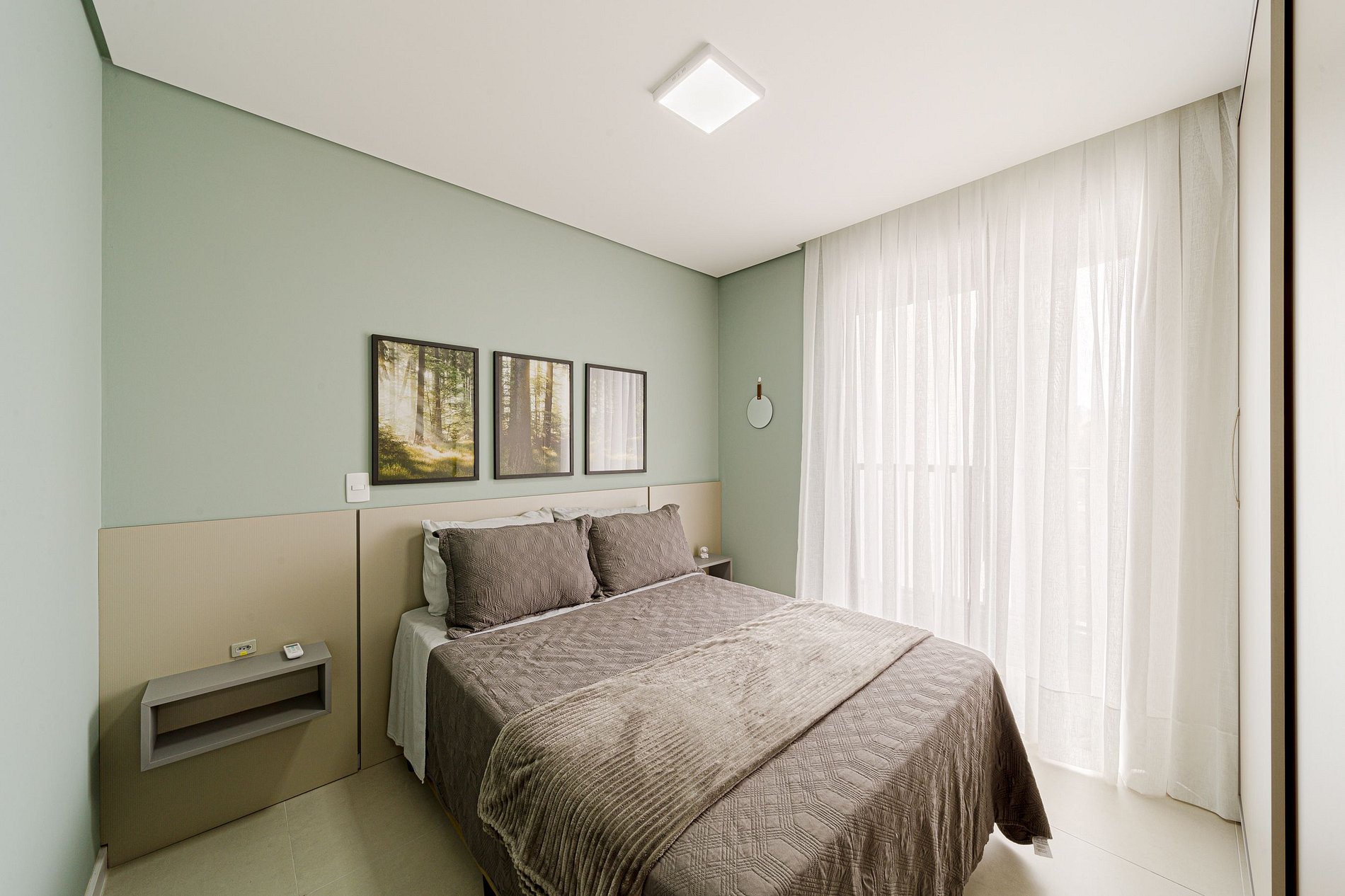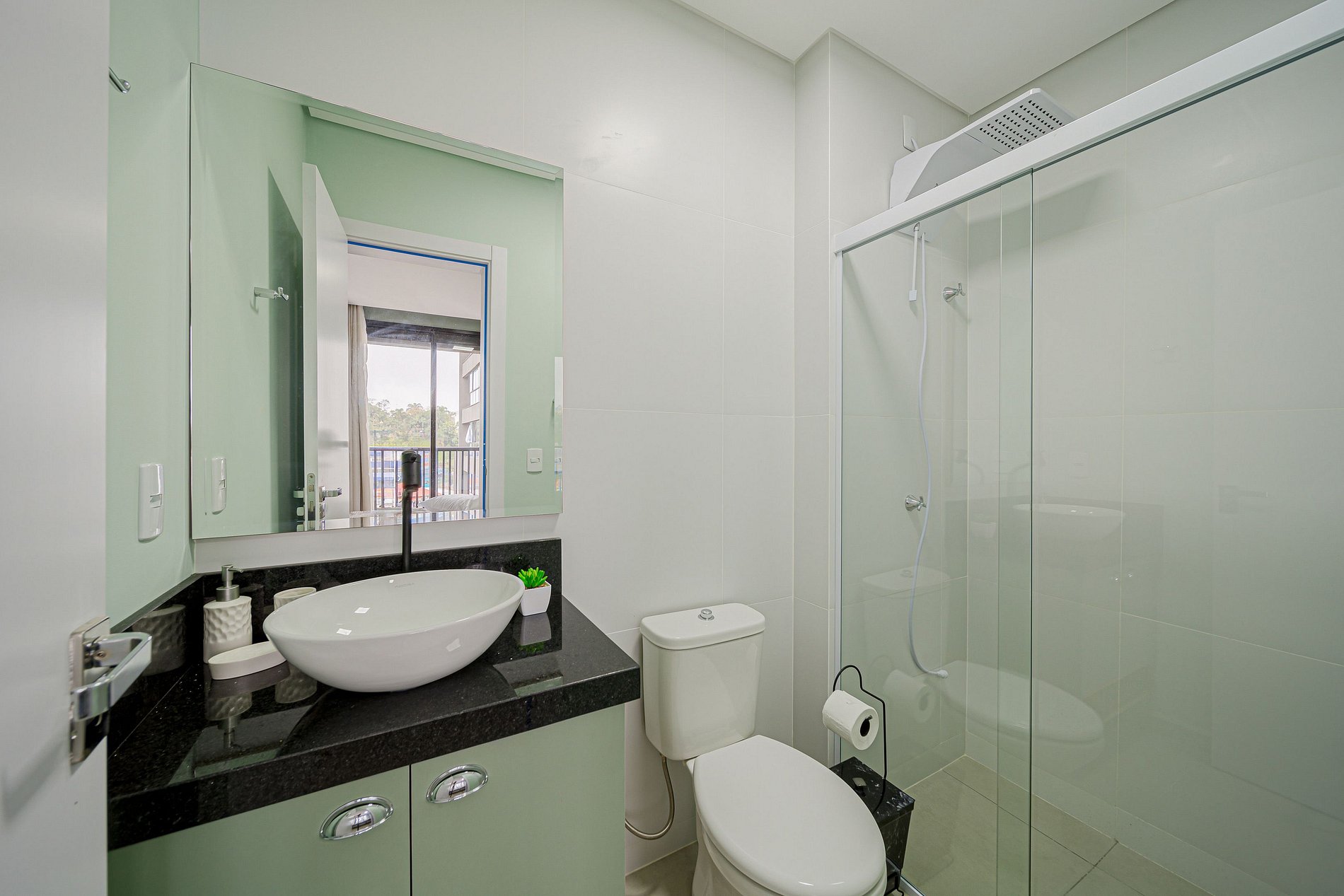 O banheiro completo garante ainda mais conforto, enquanto o layout inteligente valoriza cada metro quadrado, unindo praticidade e sofisticação.
