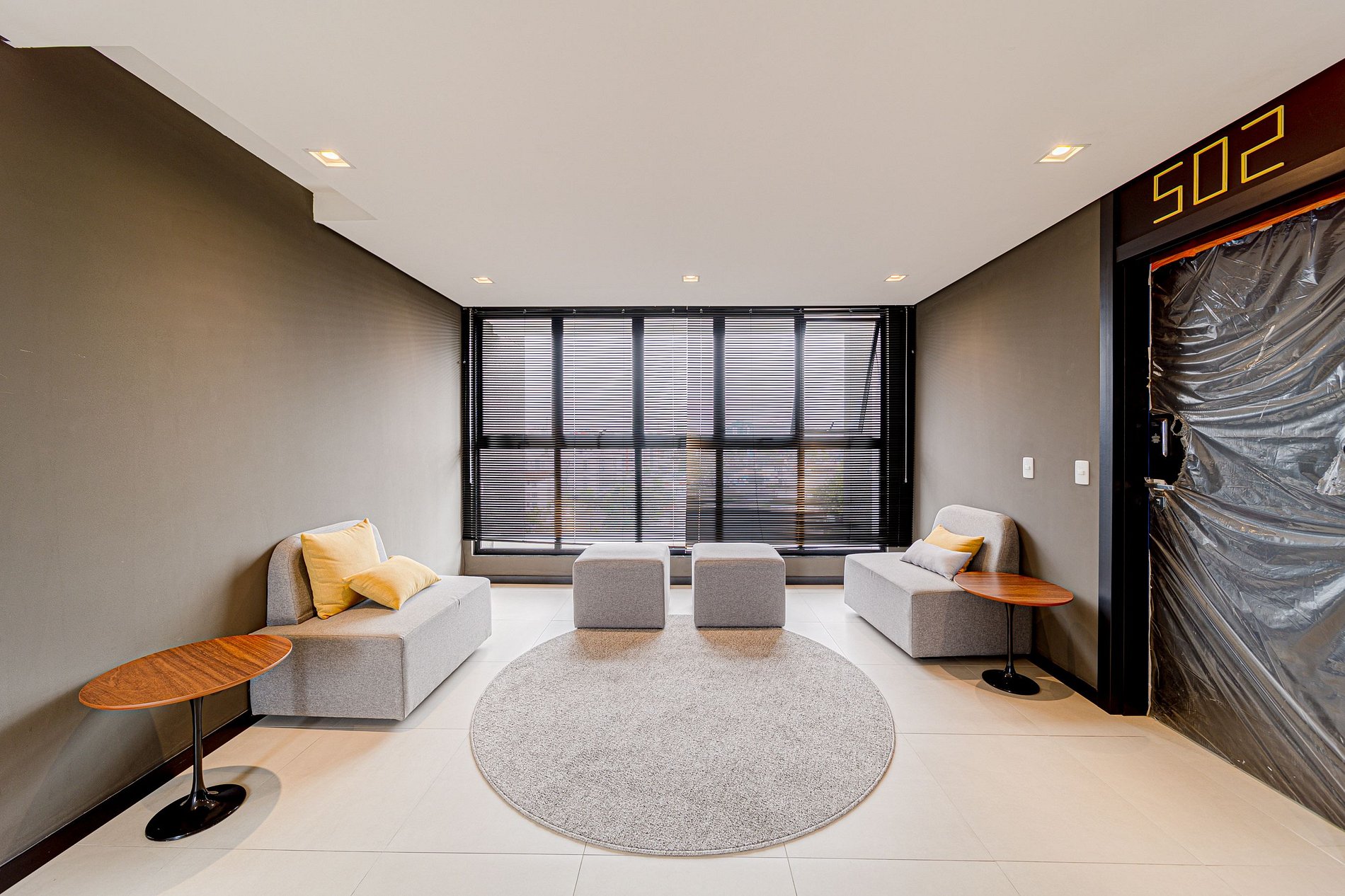 Áreas comuns são pensadas em um abiente colaborativo onde cada andar possui um lounge com espaço para trabalho no formato coworking.