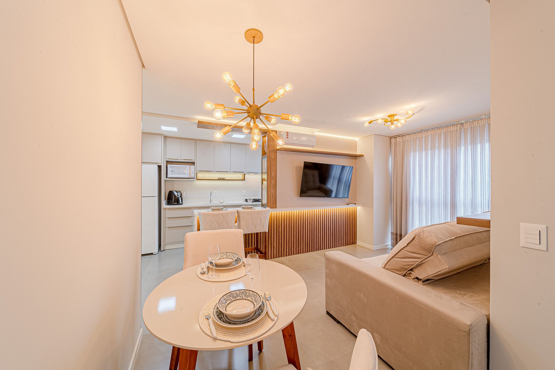 Apartamento moderno e aconchegante, projetado por arquiteta para garantir total conforto. Perfeito para casais, conta com cozinha equipada, enxoval completo, itens de banho e limpeza, proporcionando praticidade e tranquilidade durante a estadia.