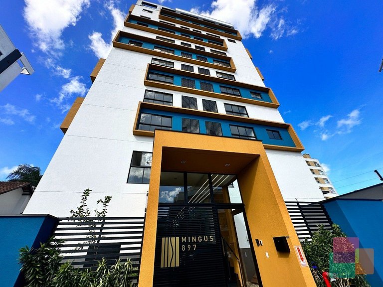 Localizado no elegante Edifício Mingus, este espaço foi planejado para oferecer uma estadia leve, funcional e cheia de charme — perfeita para quem busca bem-estar e conveniência no centro da cidade.