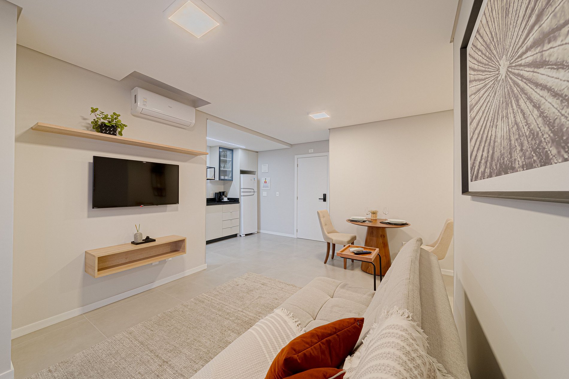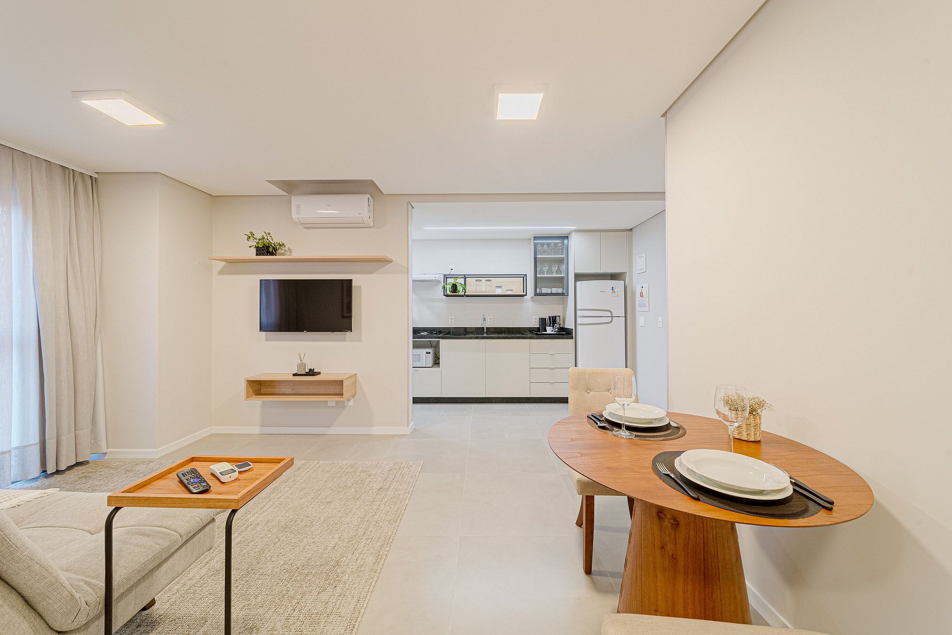 Apartamento moderno e acolhedor, projetado por arquiteta para garantir conforto e praticidade. Ideal para casais, conta com cozinha equipada, enxoval completo, itens de banho e limpeza, proporcionando uma estadia tranquila.