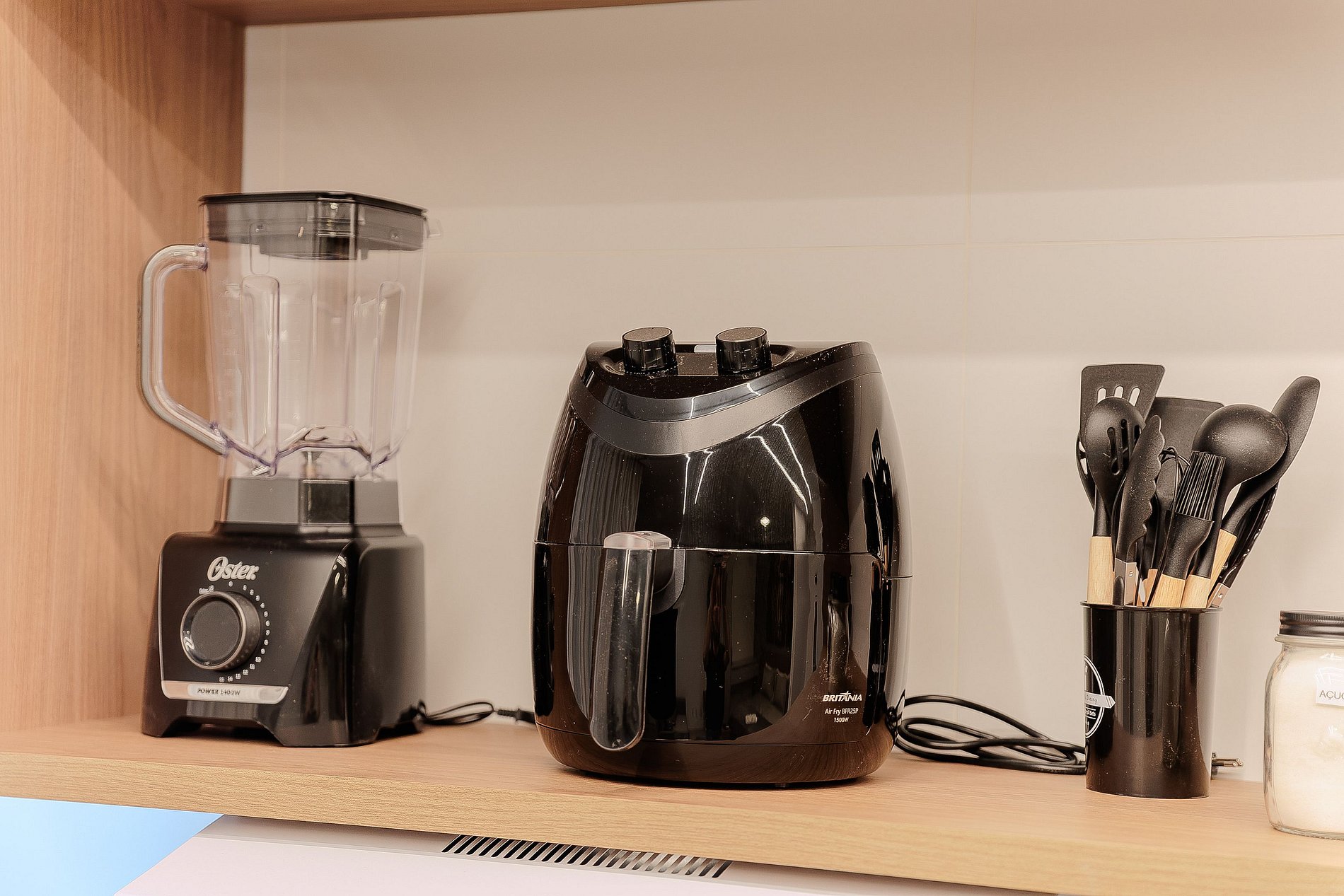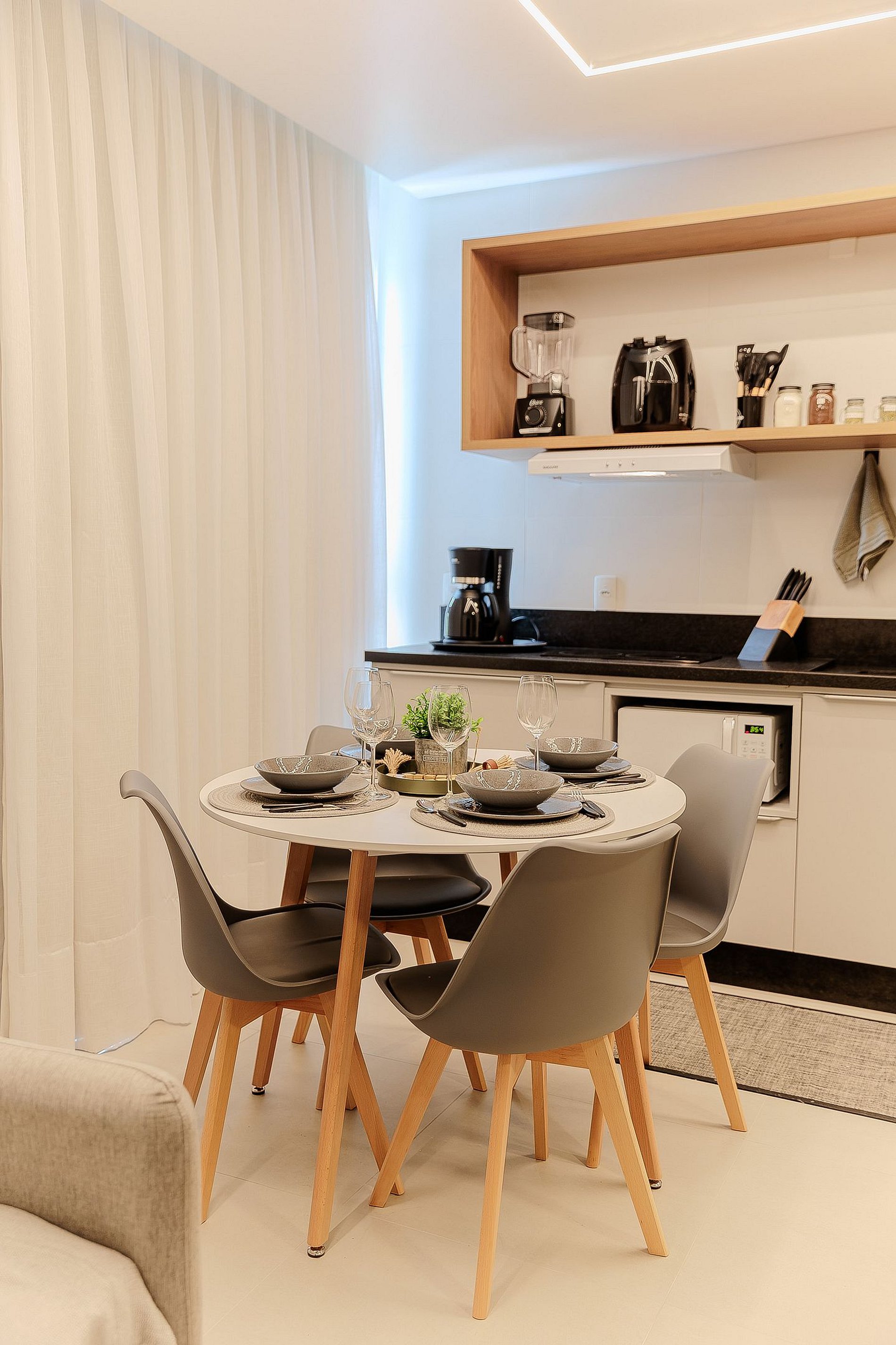O apartamento oferece uma experiência única, com decoração moderna, sacada privativa, cama confortável, cozinha completa, wi-fi rápido e ar-condicionado.