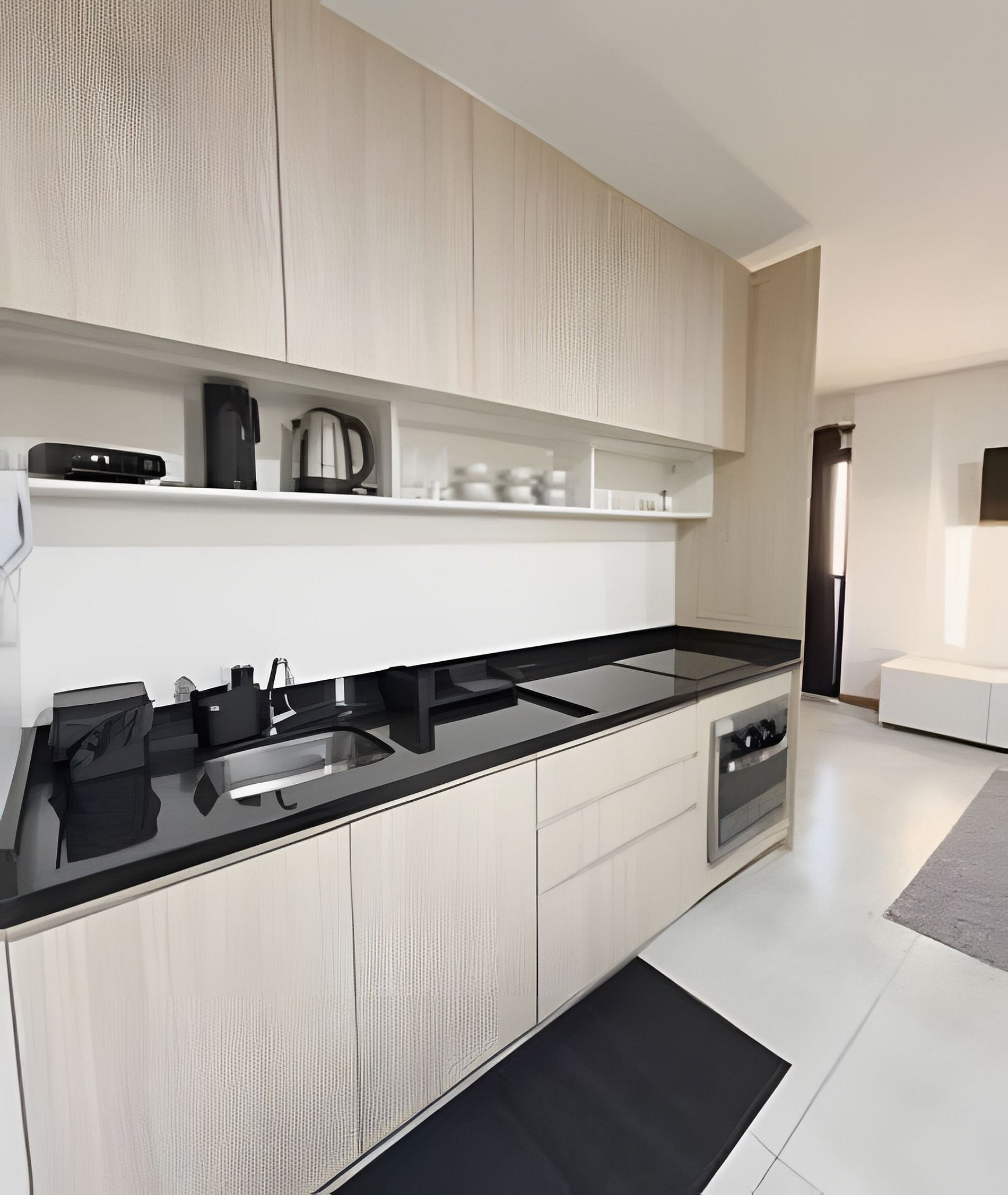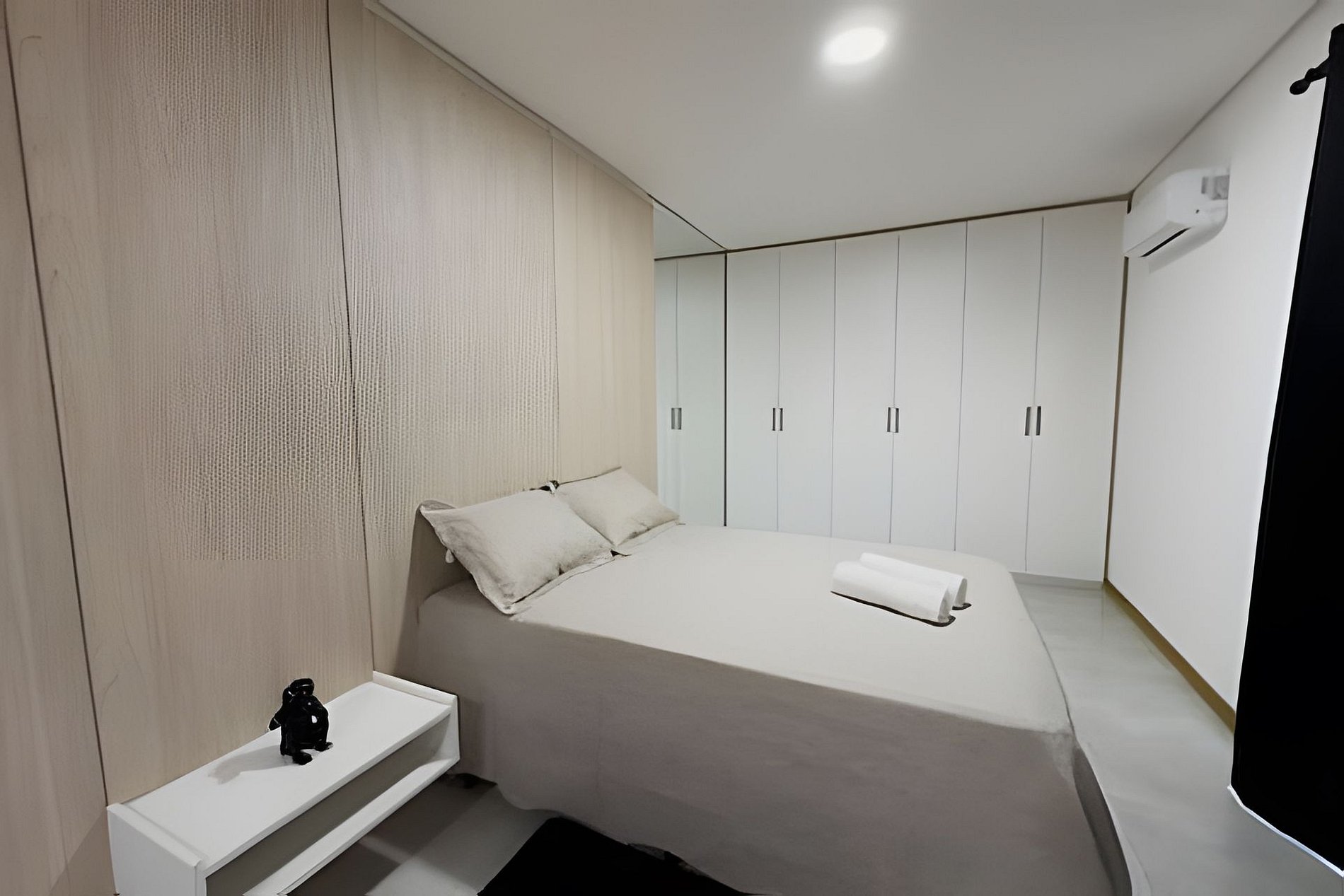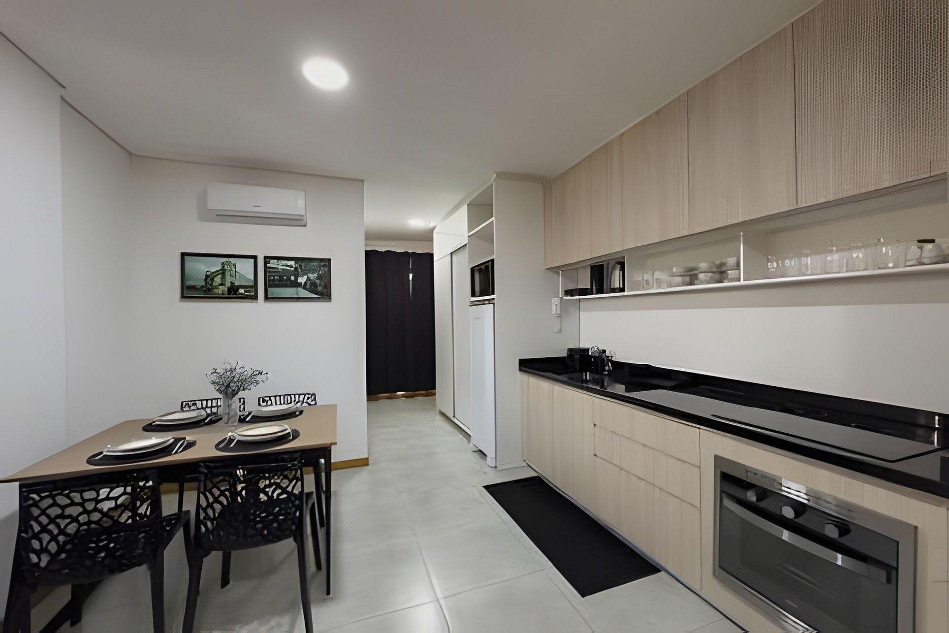 O apartamento é um refúgio de elegância e praticidade. O design proporciona uma sala de estar confortável para descansar, uma área de dormir com armário embutido para manter tudo organizado e uma cozinha compacta equipada com tudo o que você precisa para o dia a dia.