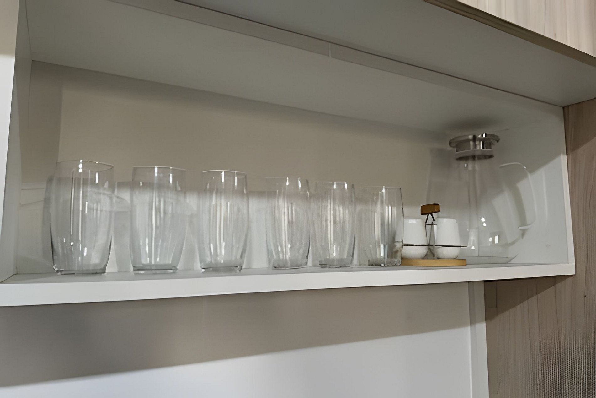 Para oferecer o máximo em conforto, disponibilizamos uma sala de estar aconchegante, perfeita para relaxar após um dia cheio de atividades. A área de descanso conta com um armário embutido, que facilita a organização e cria um refúgio tranquilo. A cozinha compacta, totalmente equipada, permite que você prepare suas refeições com praticidade, tornando cada momento mais prazeroso e especial.